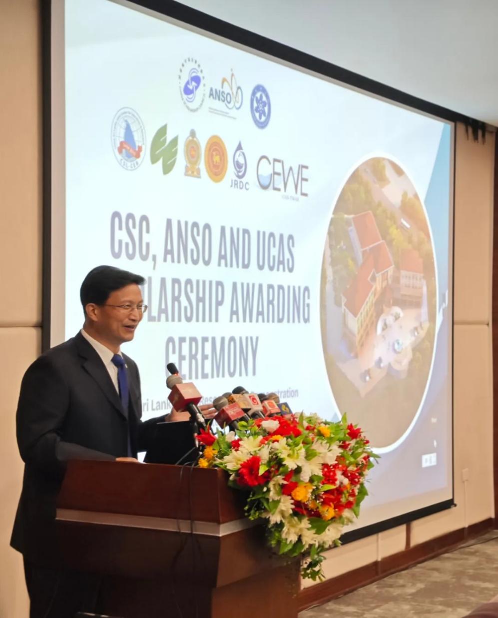 颁奖典礼由我中心毕业生、JRDC主任Madhubashini Makehelwala博士主持,她代表JRDC对获奖学生表示热烈祝贺,勉励他们珍惜来之不易的机会,在科研道路上砥砺前行。Madhujith校长在致辞中感谢中国政府、中国人民对斯里兰卡的帮助和支持,感谢中国科学院对斯科技发展和民生改善的坚定支持,期待中斯水科技合作取得更多丰硕成果,惠及更多民众。戚振宏大使在总结发言中表示,JRDC的建立与发展是两国教育与科技合作的典范。奖学金是中方助力斯里兰卡人才培养、教育合作的重要举措,也是中方鱼渔相授理念的生动实践。希望各位同学珍惜来之不易的奖学金机会,学成归来后把在中国获得的知识、技术和见识转化为推动斯里兰卡社会进步的力量,努力成为中斯友谊的桥梁与纽带。
