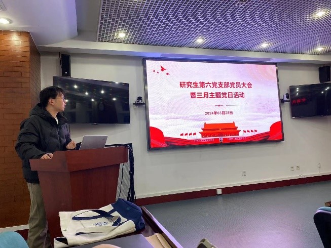 3月28日,研究生第六党支部在生态楼610会议室开展了党员大会暨三月主题党日活动,由支部书记周郁主持。