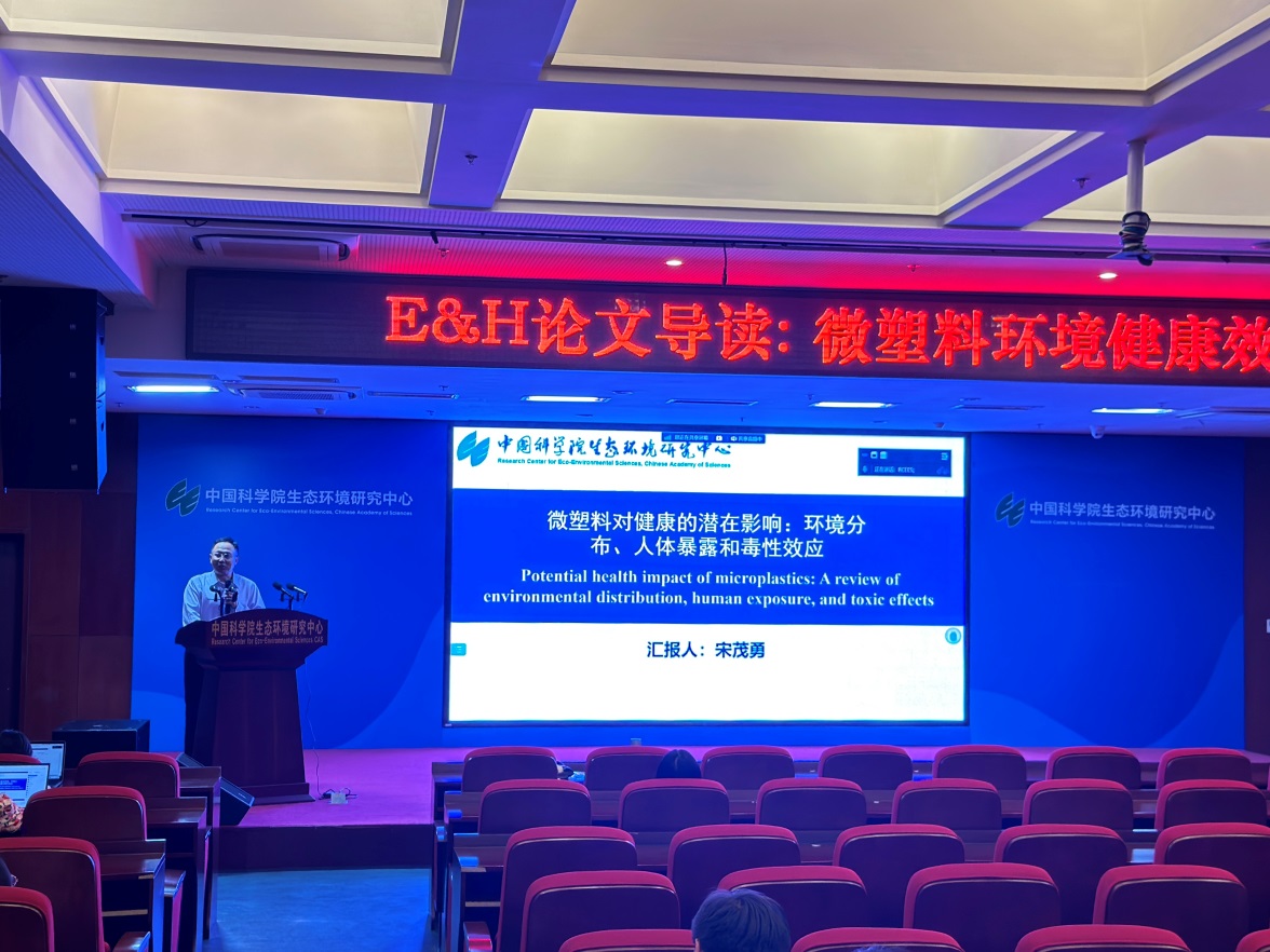 E&H期刊主编江桂斌院士概括了近年微塑料的研究进展,表达了对期刊发展的殷切期望。刘倩研究员对E&H期刊聚焦的研究目标、接收的稿件类型及编委团队进行了简单介绍。宋茂勇研究员从细胞、类器官、个体等逐渐宏观的尺度介绍了微塑料暴露途径及其在生物体内的检出毒性效应,并结合流行病学调查综述了微塑料的环境健康效应。方程高级研究员则多角度地概述了微、纳米塑料的检测方法和表征手段,介绍了结合高光谱成像和人工智能算法量化人们身边的微、纳米塑料的前沿研究成果。讲座后,同学们踊跃发言,主要围绕毒理实验中微塑料暴露浓度和形态的选取、微量暴露研究中表征结果的环境干扰排除等问题积极与两位老师交流请教。
