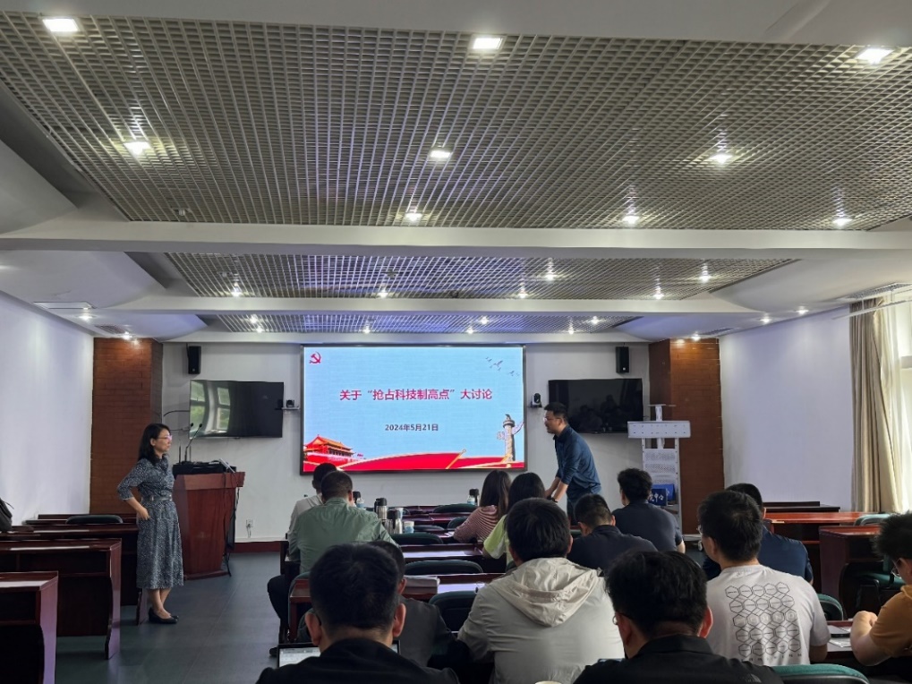 随后,中心党委委员张昱研究员就“抢占科技制高点大讨论”这一主题,与支部党员进行了深入的分享与研讨,她强调大家要坚持目标导向和问题导向,将思想和行动统一到抢占科技制高点这一核心任务上;要充分发挥体系化、建制化优势,积极策划和组织实施重大科技任务。张昱还分享了水质学党支部关于“抢占科技制高点”的问卷调查结果,鼓励大家结合自身研究领域,通过促进学科交叉交流来实现科技的突破。随后与会党员围绕“抢占科技制高点”展开了热烈讨论和交流。