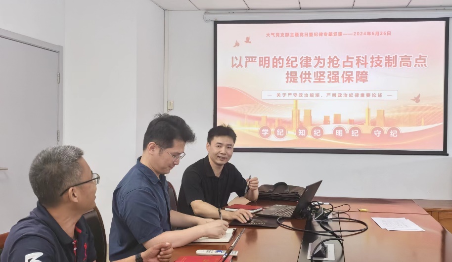 6月26日,大气党支部组织开展了党纪学习教育主题学习,由党支部书记讲纪律专题党课。