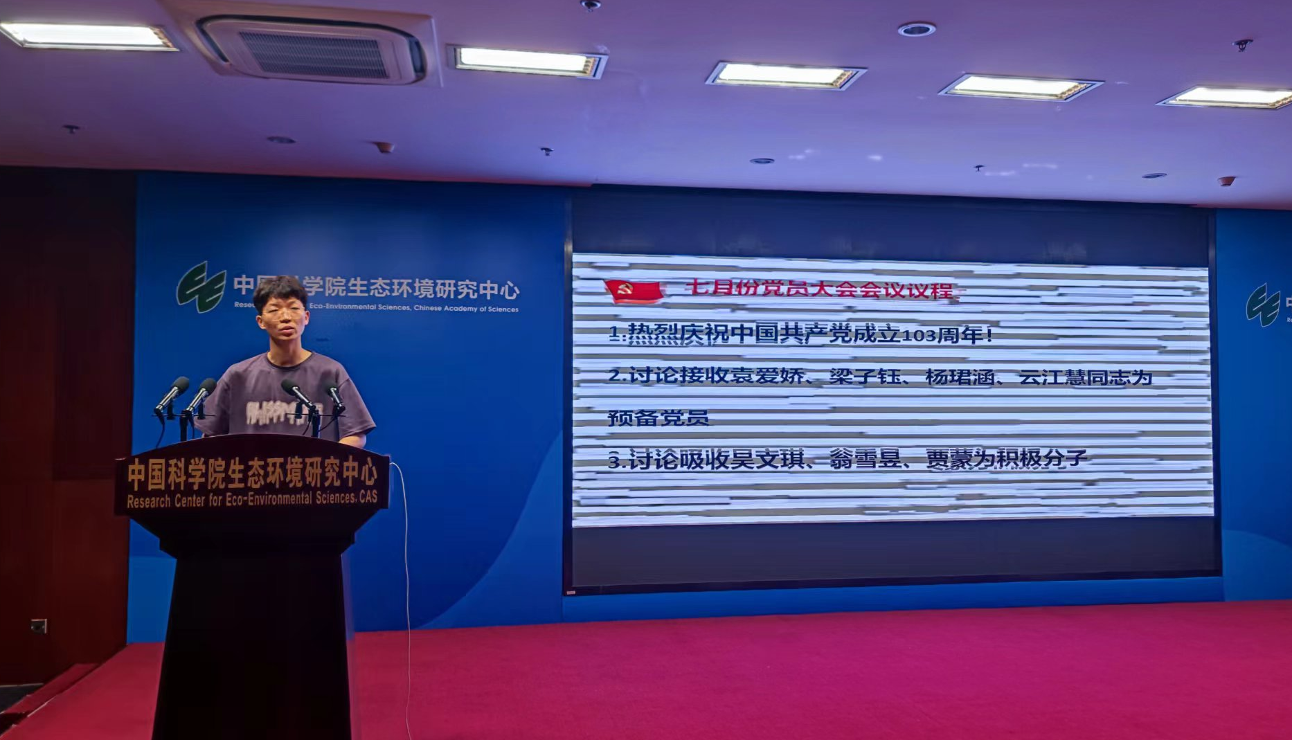7月1日,研究生第二党支部在环境科学楼报告厅召开党员大会,会议由支部副书记董景存主持。