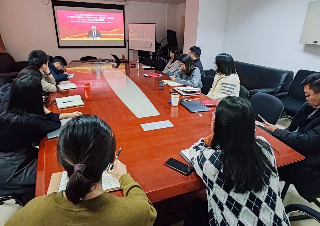 随后,支部开展了党的二十届三中全会精神的集中学习,通过视频课程引领党员们深入学习贯彻习近平总书记关于全面深化改革的一系列新思想、新观点、新论断和党的二十届三中全会精神,在交流讨论环节,大家积极分享了自己的学习体会。
