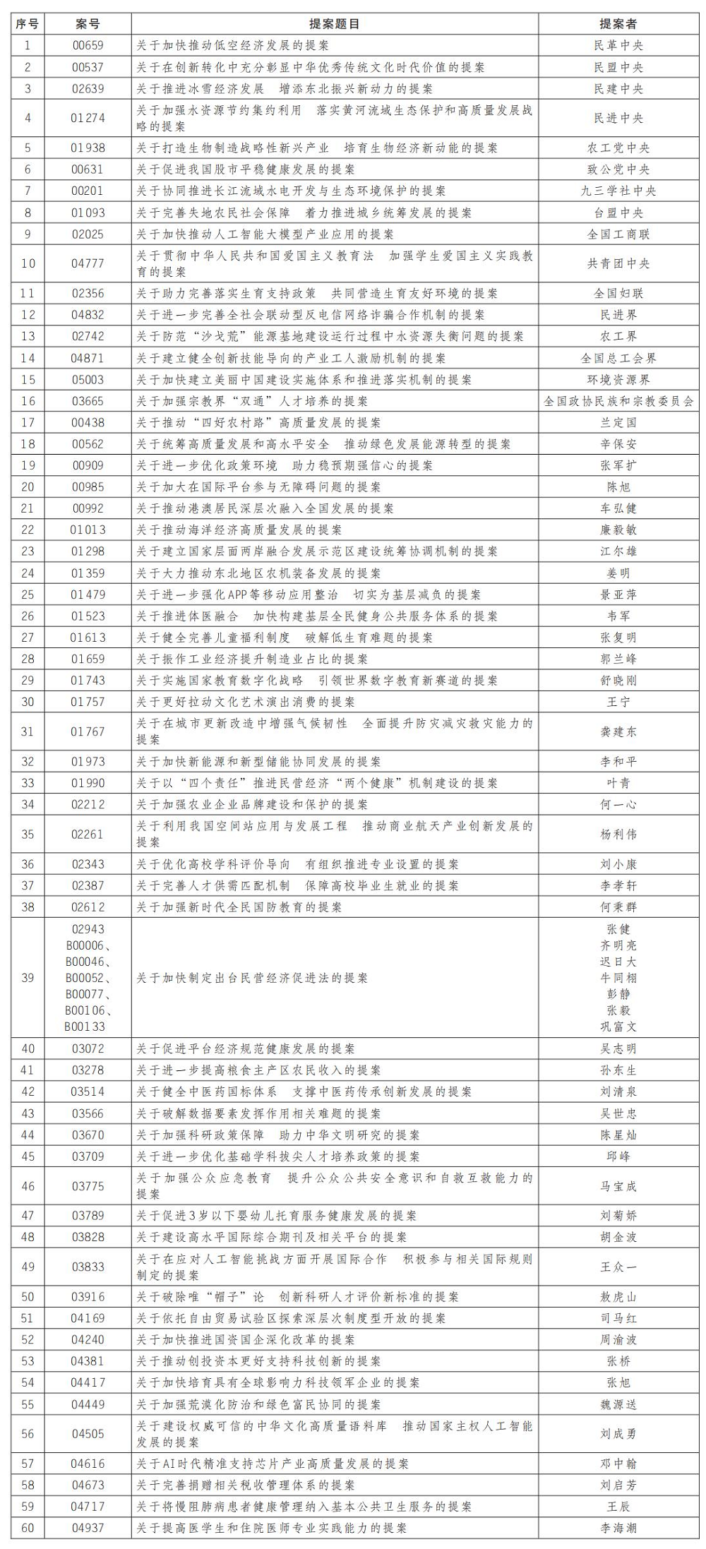 全国政协2024年度好提案名单