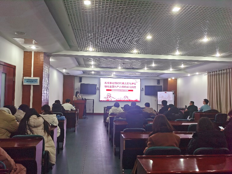 1月15日,研究生第八党支部在生态楼610会议室组织了一月主题党日活动,会议由支部纪检委员周越主持,聚焦“扎实推进新时代廉洁文化建设,强化全面从严治党的政治自觉”主题开展宣讲。