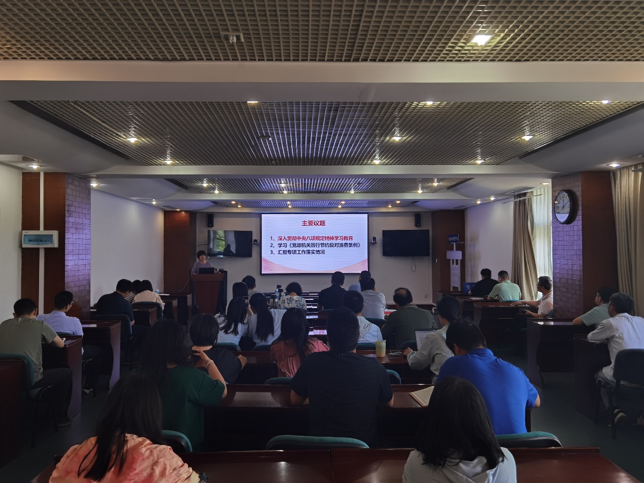 随后,占剑传达中国科学院警示教育会精神,强调各党支部要认真落实深入贯彻中央八项规定精神学习教育的工作部署,扎实推进“深化党纪学习教育 严明岗位工作纪律”专项工作。一是要再动员再部署,以案警示,以案促改,切实增强推进学习教育和专项工作的政治自觉、思想自觉和行动自觉;二是要再对标再检查,认真对标学习教育和专项工作要求,进一步找差距查不足,把准问题的脉,切实增强学习教育和专项工作的的针对性;三要再监督再完善,聚焦作风建设和三项制度落实,进一步强化监督执纪问责,促进管所治所形成制度闭环,确保学习教育和专项工作取得实效。