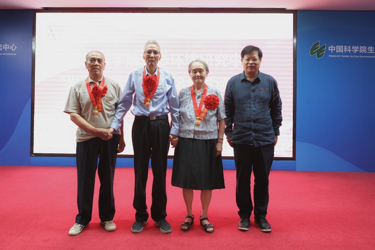 大会在庄严的国歌声中拉开序幕。占剑宣读了2025年“光荣在党50年”纪念章获得者名单;党委委员、党委办公室主任张秀丽宣读了《中共中国科学院生态环境研究中心委员会关于表彰先进党支部、优秀党务工作者的决定》。中心领导为3名老党员颁发“光荣在党50年”纪念章,为2024年度12个先进党支部、40名优秀党务工作者分别颁发了荣誉证书。