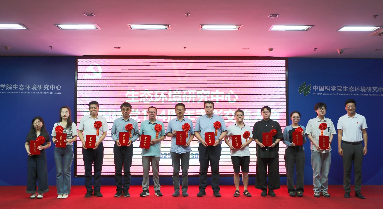 6月30日,生态环境研究中心隆重举行庆祝建党104周年表彰交流大会。中心主任朱永官院士,党委副书记、纪委书记占剑,副主任宋茂勇,副主任胡承志,党委委员、纪委委员、中层领导干部、实验室主任、党支部书记、副书记、委员、“光荣在党50年”纪念章获得者代表、先进党支部、优秀党务工作者及党员代表、党员代表共180余人参加会议。会议由占剑主持。