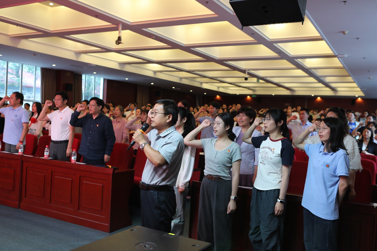 党委委员郑华研究员带领新党员宣誓、老党员重温入党誓词