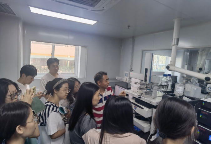 会上,于志勇老师围绕仪器核心原理展开系统讲解,从超高效液相色谱的分离机制、串联四极杆质谱的检测逻辑,到全自动在线固相萃取的样品前处理原理,帮助大家深入理解仪器各模块的协同工作机制,明晰其在复杂样品分析中的技术优势。通过理论梳理,与会同学对该仪器的科学原理与应用价值形成了清晰认知。随后,于志勇老师带领大家实地参观仪器设备,结合硬件结构现场解答大家提出的操作疑问,从流动相配置、样品加载到质谱参数调试等实操环节逐一回应,针对性解决大家在未来使用中可能遇到的技术困惑,让理论知识与实际设备形成直观关联,强化了学习效果。