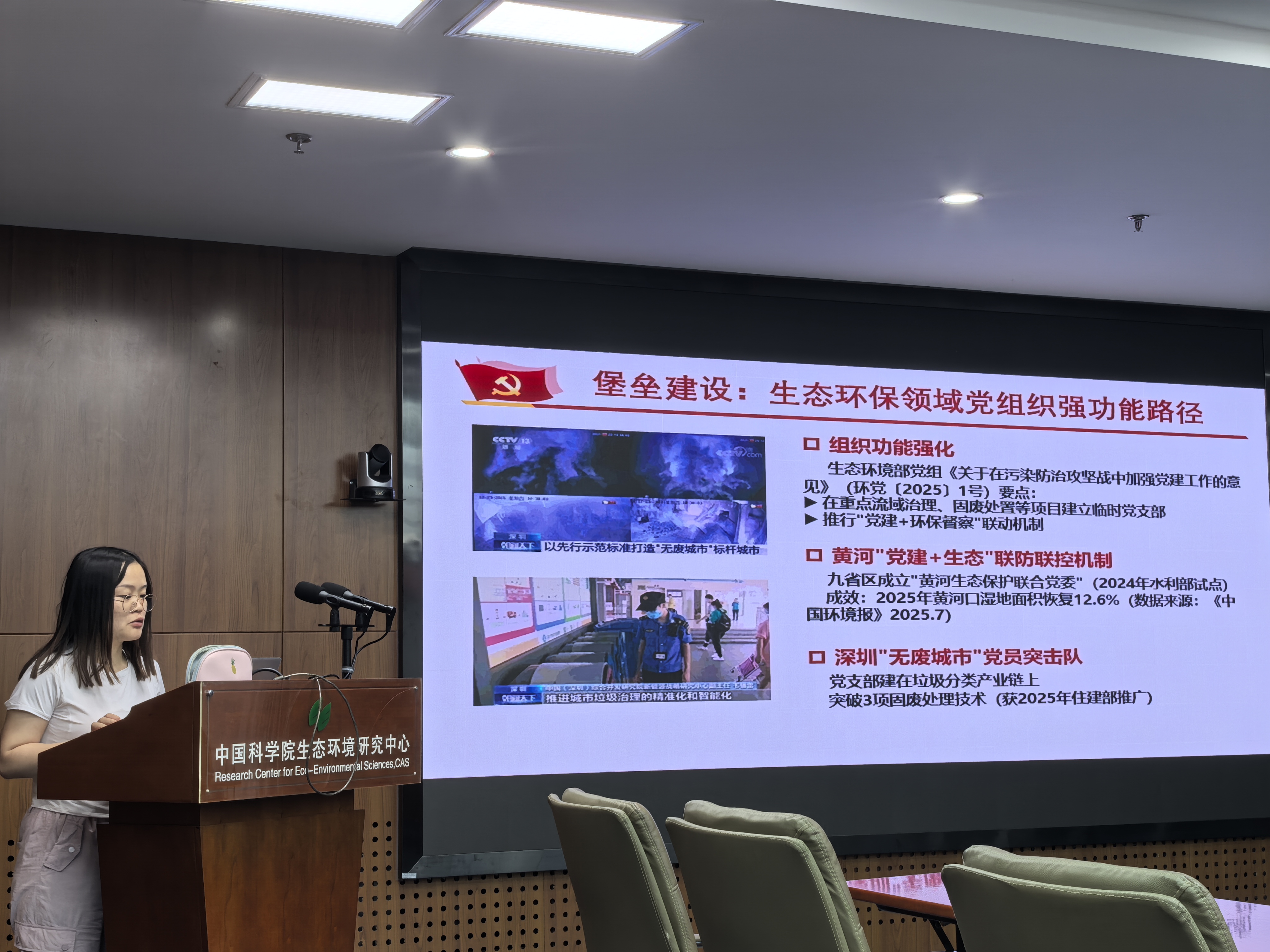 会上,徐静怡同志带领大家重温学习了《中国共产党支部工作条例(试行)》,强调要切实增强党支部的政治功能和组织功能,充分发挥战斗堡垒作用。随后,研究生第三党支部书记冯川玉同志围绕中国共产党在生态文明建设中的思想引领、组织堡垒、科技攻坚和先锋行动作了专题交流,指出要以党建“红”引领生态“绿”,以科技“蓝”赋能美丽中国建设。