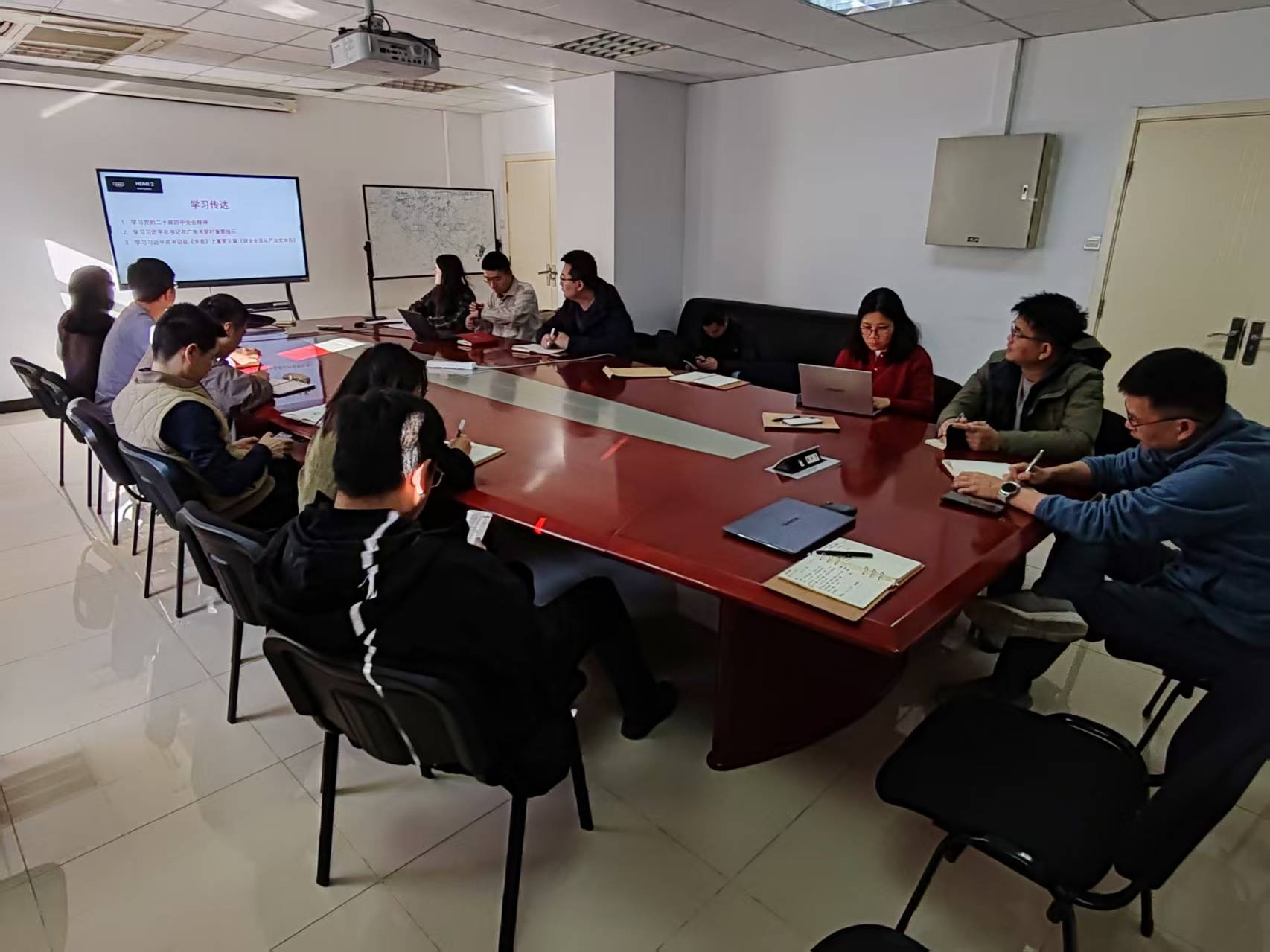 会议首先组织开展集体学习。全体党员深入学习了党的二十届四中全会精神,深刻领会党中央关于推进中国式现代化的战略部署。认真学习了习近平总书记在广东考察时的重要指示精神,把握其对高质量发展与科技创新的重要要求。此外,专题学习了习近平总书记《求是》重要文章《健全全面从严治党体系》,进一步强化对党的自我革命战略思想的认识。