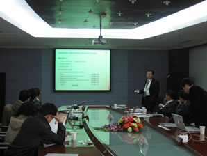 中韩第三届CAS(中国科学院)-KIST(韩国科学技术研究院)研讨会环境分组会2006年11月16日在我中心召开。这次与会的 KIST代表是四名从事水环境和大气环境研究的科学家,我中心研究员杨敏、张晓山、贺泓、强志民、大气物理所廖红研究员等参加了研讨会,束积年研究员等部分生态环境研究中心研究人员和学生列席了会议。在双方科学家分别对各自的研究机构以及研究内容和成果进行系统介绍的基础上,双方进行了认真的研讨,并就今后加强在营养盐去除和生物质利用研究领域的合作达成共识。