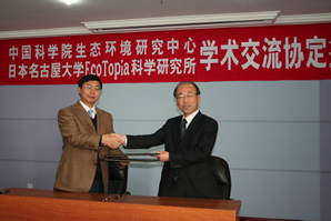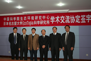 2006年11月18日,我中心与日本名古屋大学EcoTopia科学研究所正式签署学术交流协议。名古屋大学创建于1871年,学校设有理、工、农、医等9个学部和12个学科,是一所综合性的国立大学。EcoTopia科学研究所是日本名古屋大学最大的综合性研究所,核心研究领域包括环保、能源和纳米科学等。此次名古屋大学EcoTopia研究所来访人员包括所长松井恒雄教授,副所长伊藤秀章和北川邦行教授。中心主任曲久辉与松井所长 进行了友好的交谈,并代表双方在协议书上签字。根据该协议,双方将在研究生交流、研究人员互访及科研合作方面开展更广泛的合作。中心副主任江桂斌、中心主任助理朱永官、张付申研究员、综合办公室相关人员参加了签字仪式。