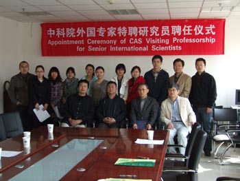 4月7日上午,生态环境研究中心在环境技术楼423会议室为受聘2009年度中国科学院外国专家特聘研究员的小田美光博士举行了聘任仪式。生态环境中心合作者杨敏研究员与小田教授签署了合作协议,人事教育处处长张利田代表生态环境中心致欢迎词,并向小田美光特聘研究员颁发了由中国科学院院长路甬祥签署的专家证书。