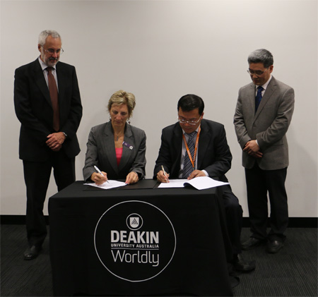 3月26日,庄绪亮代表中心与迪肯大学常务副校长Lee Astheimer教授在迪肯大学的Waurn Ponds校区共同签署了合作备忘录,深入讨论了如何进一步加强和推进双方在科研创新、研究生共同培养、人才交流等方面的合作,并就具体的合作方向、合作模式等达成了共识。迪肯大学高度重视与中心的合作,曾于2013年7月和10月两次组派代表团访问中心。此次访问迪肯大学,并签署合作备忘录,标志着双方在生态与环境领域建立了全面的合作伙伴关系。