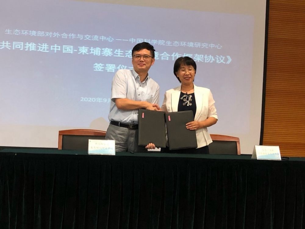 9月2日,生态环境研究中心(中心)与生态环境部对外合作与交流中心(对外合作中心)联合举办“共建绿色‘一带一路’——聚焦后疫情时代企业‘走出去’绿色创新之路主题研讨会”及《共同推进中国-柬埔寨生态环境合作框架协议》签署仪式。生态环境部国际合作司副司长肖学智、科技部21世纪议程管理中心副主任陈其针、中科院国际合作局亚非处副处长蒋一琪,以及来自商务部国际贸易经济研究院、中国石油化工集团公司、中国电力建设集团有限公司、中国交通建设股份有限公司、中国环境保护产业协会等10余家机构及企业的领导与专家出席了研讨会并见证签约仪式。