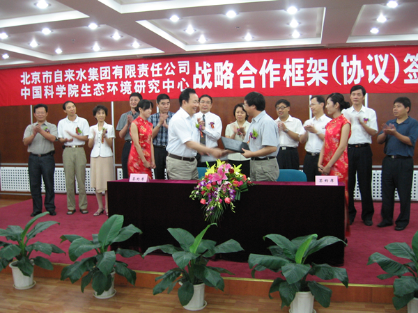 7月18日,中科院生态环境研究中心与北京市自来水集团公司正式签订战略合作框架协议。双方将通过优势互补,共同解决北京饮用水安全保障问题,提高首都供水企业抵御风险的能力。