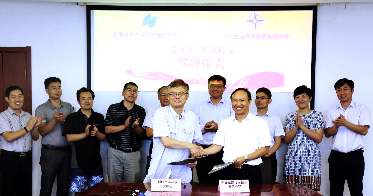 7月9日下午,生态环境研究中心与中交生态环保投资有限公司(以下简称:中交环保)战略合作框架协议签约仪式在我中心举行。中心副主任杨敏和中交环保总经理彭增亮分别代表双方进行签约。环境水质学国家重点实验室、城市与区域生态国家重点实验室、农村污水处理技术北方研究中心以及科技开发处等有关负责人出席了签约仪式。