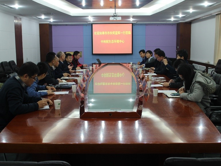 11月20日上午,如皋市市长何益军一行三人到访生态环境中心,就乡村环境综合治理技术示范与产业化推广进行合作洽谈。中心主任欧阳志云会见了何益军一行。院科技促进发展局农业科技办公室副主任韩永滨、资源环境处高级工程师孙永溪,中交生态环保投资有限公司副总经理王永吉及部门负责人、中心科技开发处、刘俊新研究员、范彬研究员等科研人员参加了座谈。