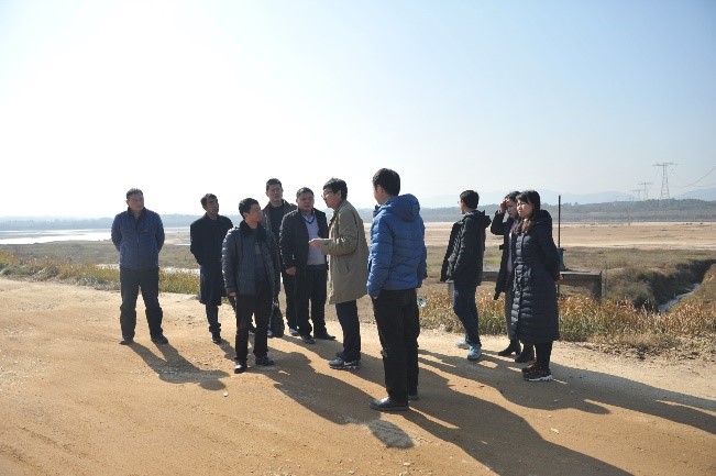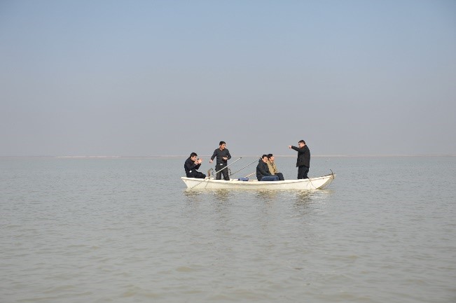 1月23-24日,驻点工作组现场调研了鄱阳湖国控南矶山断面、金溪咀国控断面、生态保护区、赣江南支青云闸排水口、南昌青山湖污水处理厂、青山湖区罗家镇赵坊村农村污水处理设施、赣江和抚河的岸线和水生态情况。通过现场调研,工作组进一步了解到鄱阳湖流域国控监测断面总磷超标、定位观测站缺乏导致长期观测数据匮乏、生态环境问题追根溯源困难的现状;抚河的浊度高、水量少、汛期短、水生生物少,赣江和抚河的生态岸线受到了明显的破坏,沿岸生态修复是该流域生态环境保护修复的关键之一。工作组并就处理厂尾水排放、污水厂处理效能、运行状况、提标改造技术方案和改扩建规划等问题与污水厂相关负责人进行了深入讨论。工作组询问了一体化污水处理设备的建设、运行、维护和资金来源进行,了解到一体化污水设备投资、运行费用较高,在江西地区大规模推广的资金及运营管理存在较大难度,建议需根据南昌农村经济、社会发展状况及水平,开发、应用经济高效、易于维护的污水处理技术,实现农村污水的长效治理。