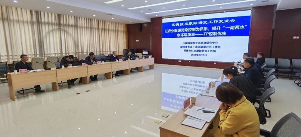 3月5日,生态环境研究中心牵头的长江干流洞庭湖片区工作组和长江生态环境保护修复常德驻点跟踪研究组(以下简称“驻点跟踪研究”)与常德市生态环境局在常德市召开“长江生态环境保护修复驻点跟踪研究座谈会”。常德市生态环境局党组书记李宏秋、常务副局长万勇、副局长朱昱睿及相关主管科室负责人,中心科技开发处处长严岩研究员、常德驻点跟踪项目负责人刘俊新研究员、院地合作办公室副主任张同亮、洞庭湖片区联系人吴尚华、常德驻点联系人郑天龙和参与单位双赢环境董事长陈鹏等12人参加了会议。会议由常德市生态环境局常务副局长万勇主持。