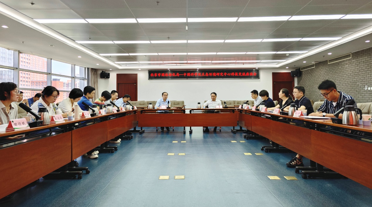 占剑对沙海江一行的到来表示热烈欢迎,并介绍了中心基本情况。沙海江说明了此次调研的背景并简述北京市园林绿化局基本情况。科技开发处、国家公园研究院、北京城市生态研究站分别就中心科技服务北京绿色发展、国家公园研究院近期工作进展以及北京城市生态研究站近年来取得的主要研究进展作了专题汇报。双方就过往合作、首都花园城市建设、生态监测、生态格局优化、数据共享、科普教育宣传、人才交流等方面开展深入交流讨论。