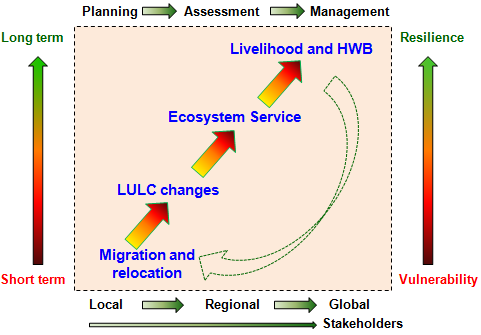 评估发现:尽管政府短期投入成本远大于其短期效益,但长远来看,移民安置政策增加了生态系统水质净化、土壤保持和固碳服务,将给当地政府、下游水资源用户和全球受益者带来显著的净效益。然而,对移民搬迁农户而言,需要付出较高的安置成本,导致贫困农户由于缺乏支付能力而难以参与移民安置项目,增加移民补贴以及移民安置后的生计扶持、从水质改善和固碳服务增加的受益者中获得补偿等措施将有助于实现项目预期目标。该项研究以生态系统服务的多尺度传递为基础,将生态系统服务与多个尺度利益相关者的福祉有机联系起来,为开展保护与发展政策的综合研究提供了框架和科学方法,研究成果有助于推动保护与发展政策的科学设计、合理评估和高效实施。