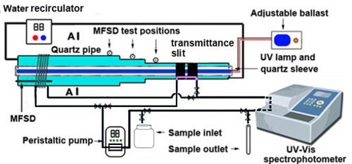 图1 配装低压汞灯(LPUV)的细管流紫外反应系统