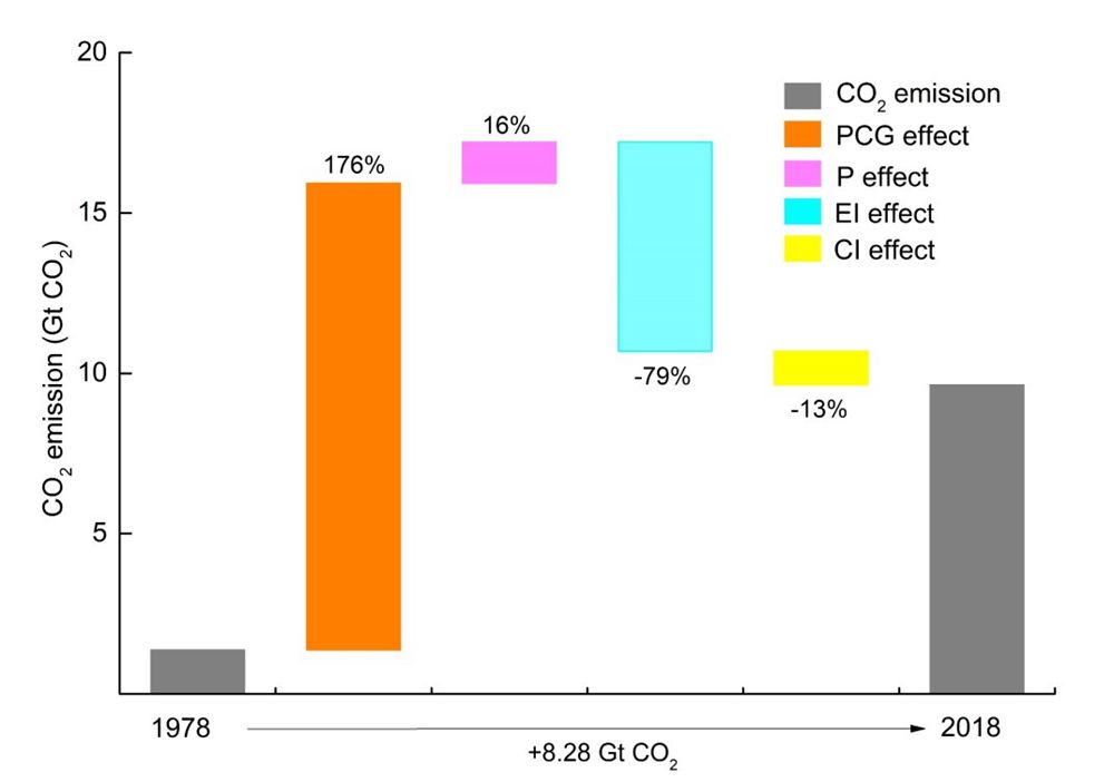 刚刚过去的2018年恰逢我国改革开放40周年,中国经济发展在这40年中取得了举世瞩目的发展成就,成为全球第二大经济体。经济的快速发展也带来了诸多生态环境问题,其中之一就是能源活动碳排放的快速增长。目前全球碳排放量最大的国家是中国,其占全球碳排放量的30%左右。在全球碳排放空间日益紧缺的背景下,各国都在积极探索如何通过低碳转型有效控制碳排放增长。研究中国自改革开放以来的碳排放增长的影响因素及其变化特征,有助于提高碳排放控制政策的科学性和可操作性,同时也能为其他新兴经济体提供有益的启示和借鉴。
