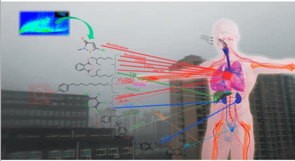 大气颗粒物组分和来源极其复杂,其诱发疾病的毒性组分及健康危害机制仍不清楚,尤其是关键毒性组分不明,这给有针对性地控制大气颗粒物的健康风险带来了极大困难。课题组利用仪器分析,再结合EPA ToxCast项目数据库,从中筛查出76个ToxCast 化合物,其中21个化合物之前在大气中较少被关注,5个在大气中为首次报道。结合污染物的药代动力学模型,进一步筛选出大气中29个需优先关注的高风险污染物。将涉及29种大气污染物和31个人体分子靶点的267条化学-效应通路映射在一个二分网络中,从中发现12个主要的不良作用途径。表明大气中有机污染物除先前多报道的心血管和肺外,还可能通过改变细胞增殖、蛋白质稳定、受体结合和调节转录因子活性使不良反应发生在肝脏、肾脏、前列腺和骨骼。