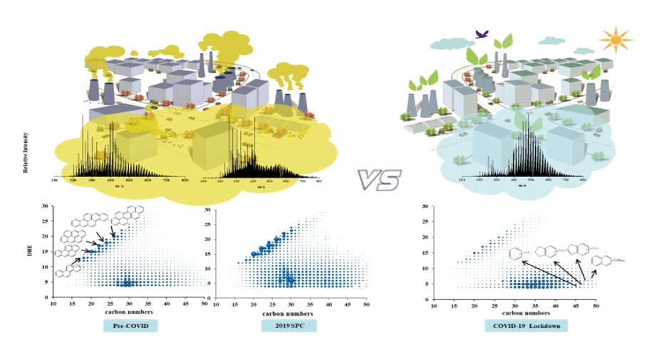 不同人类活动排放的多环芳烃的化合物特征不同,课题组采集了不同时期的大气样品,结合仪器分析和聚类分析,结果表明不同时期颗粒物中芳香类化合物的组成特征不同。人为活动减少时期,芳香类化合物以低不饱和度和长烷基侧链取代的芳烃为主,可能主要来源于消费品使用,煤燃烧以及石油化工等相关产业的排放,CHO类化合物具有更高的氧化度,可能来自于氧化的芳烃类气溶胶,稠环PAHs的硝基衍生物是主要的CHNO类化合物,在此期间NOx和PAHs排放减少可能导致其同系物数量降低。本研究对识别大气颗粒物中芳香类化合物的来源,实施有效污染防控具有借鉴意义。