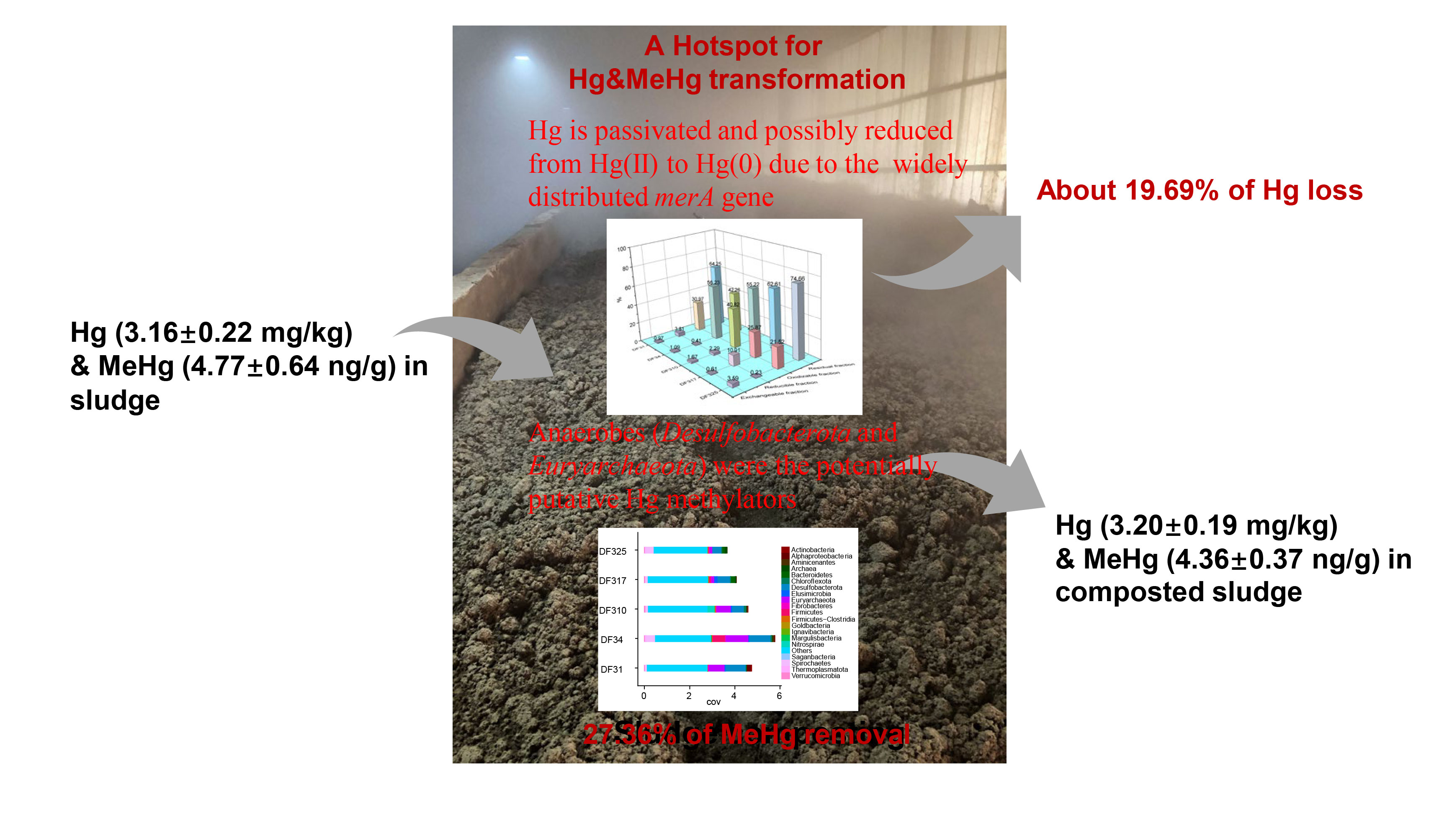 污泥是污水净化过程的副产物,既是污水中汞的“汇”,又是环境中汞的“源”。 污泥富含有机质、氮磷钾等营养元素,好氧堆肥—土地利用广泛应用于污泥的减量化、无害化和资源化,是我国污泥处理处置的主要方式。然而,目前污泥好氧堆肥过程中汞的研究几乎都集中在总汞含量的变化,而有关该过程中汞的形态转化特别是甲基汞形成和去除的微生物机制尚缺乏认识。