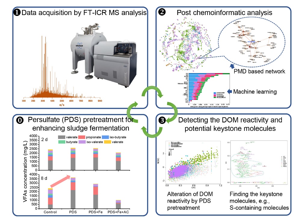 中国科学院生态环境研究中心魏源送研究组基于高分辨质谱和数据挖掘方法揭示了污泥厌氧发酵过程溶解性有机物的反应特性,相关成果近期发表在Water Research (2023, 229, 119488)。