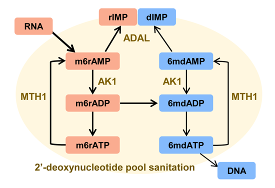 中国科学院生态环境中心环境化学与生态毒理学国家重点实验室汪海林研究组在在哺乳动物基因组DNA 6mdA修饰掺入控制机制方面取得新进展,相关研究成果近日在线发表于EMBO Journal 杂志(Aberrant DNA N6-methyladenine incorporation via adenylate kinase1 is suppressed by ADAL deaminase-dependent 2’-deoxynucleotide pool sanitation, doi: 10.15252/embj.2023113684)。