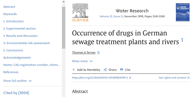 意义与反响:该论文发表于1998年,对于污水厂及水环境中药物污染进行了系统性分析,揭露了药物污染在水体中的广泛分布特征。研究明确了污水处理厂在药物污染防控中的重要作用,也指出了污水处理工艺的局限,为药物污染的管理与防控提供了非常重要的启示。