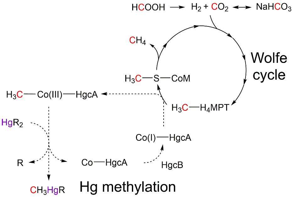 图1 产甲烷菌Wolfe cycle依赖的汞甲基化机制
