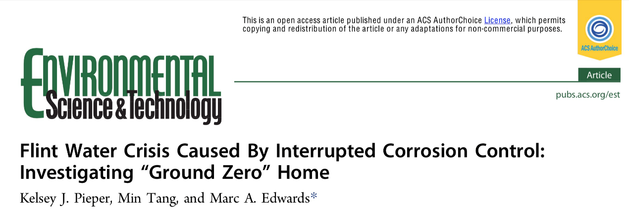 文章标题:Flint Water Crisis Caused By Interrupted Corrosion Control: Investigating “Ground Zero” Home