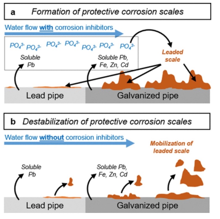 3. 室内家庭管道不是铅的主要来源。相反,铅污染来自腐蚀的镀锌铁服务管线: