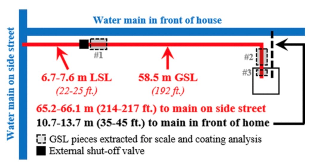 图3 镀锌铁服务管线(GSL)和铅服务管线(LSL)的示意图