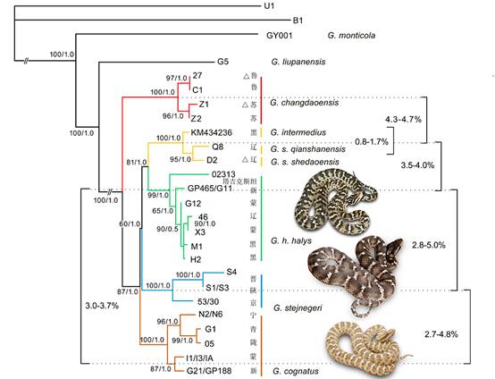 华北蝮、西伯利亚蝮和阿拉善蝮的系统发育树