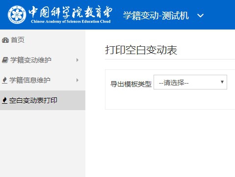 1.如遇学生有特殊情况,不能自行在系统内提交申请,需让学生在线下填写学籍变动审批表后,由各研究所的教育干部老师代替学生进行申请,其他后续流程不变。学籍变动审批表可在系统内进行打印。教育干部操作页面如下: