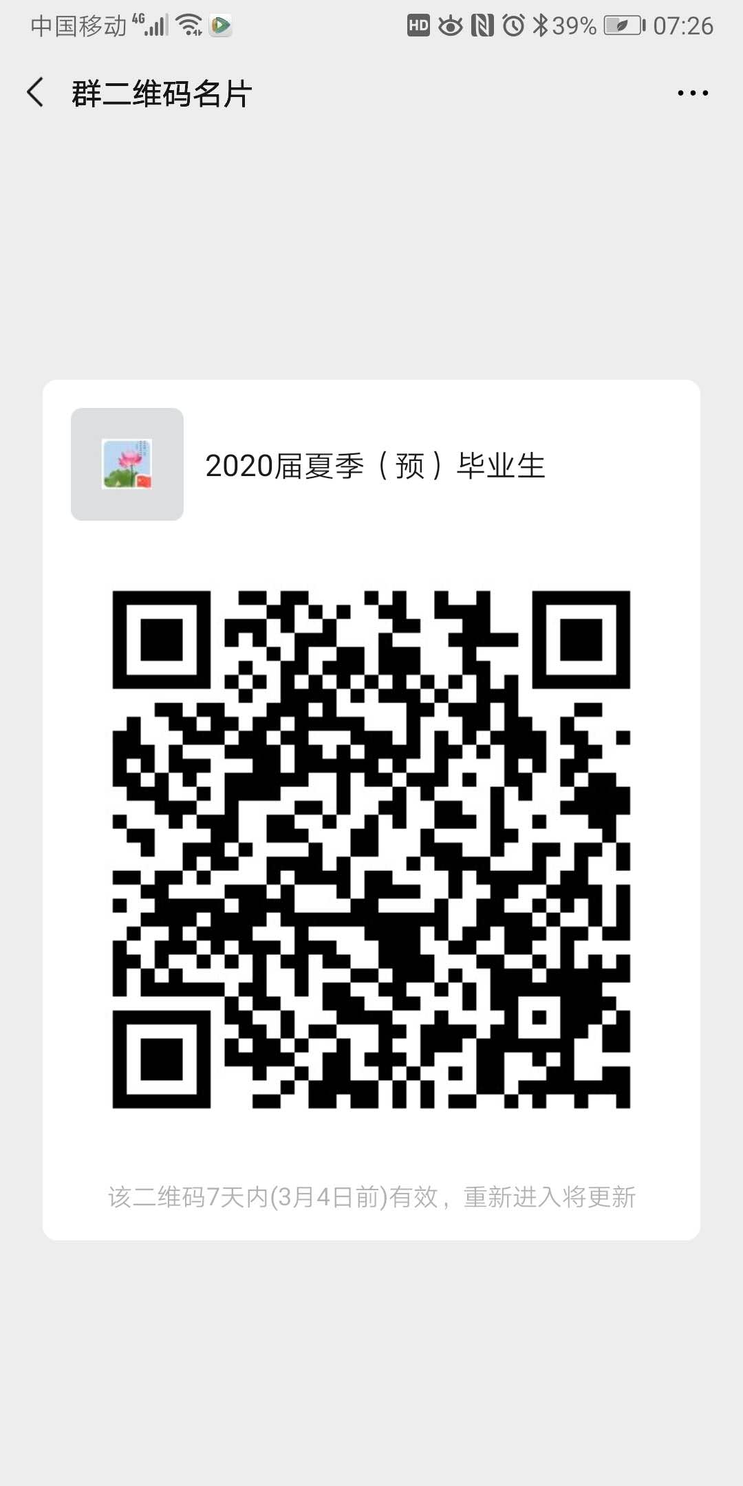 1.请2020届夏季(预)毕业生加入微信群2020届夏季(预)毕业生,微信二维码见附件17,修改本群的昵称为本人姓名+导师姓名组。