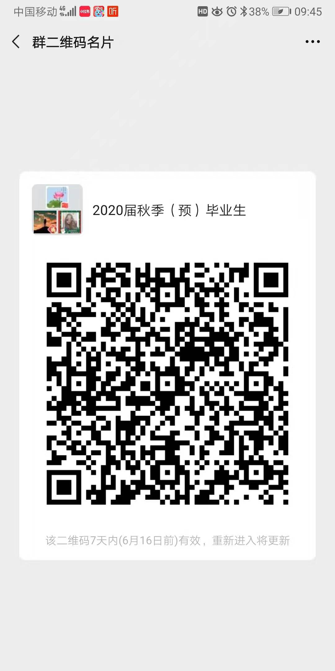 1.请2020届秋季(预)毕业生加入微信群2020届秋季(预)毕业生,微信二维码见附件17,修改本群的昵称为本人姓名+导师姓名组。