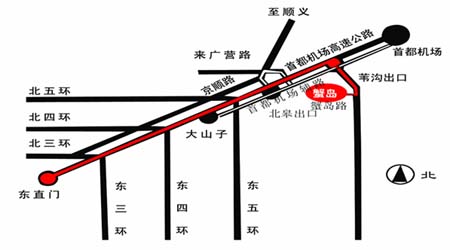 会议地点路线图(自驾车路线:三环、四环、五环走机场高速,从东苇路(苇沟)出口处红绿灯右转前行三百米左转即进入蟹岛。)