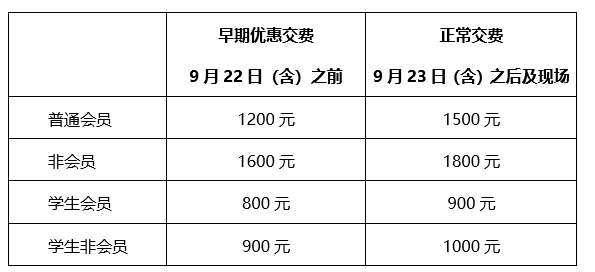 参会者需交纳会议注册费,提前交费和中国生态学学会有效会员可享受注册费优惠。新入会者须在9月20日前完成会员注册,方可享受注册费优惠。