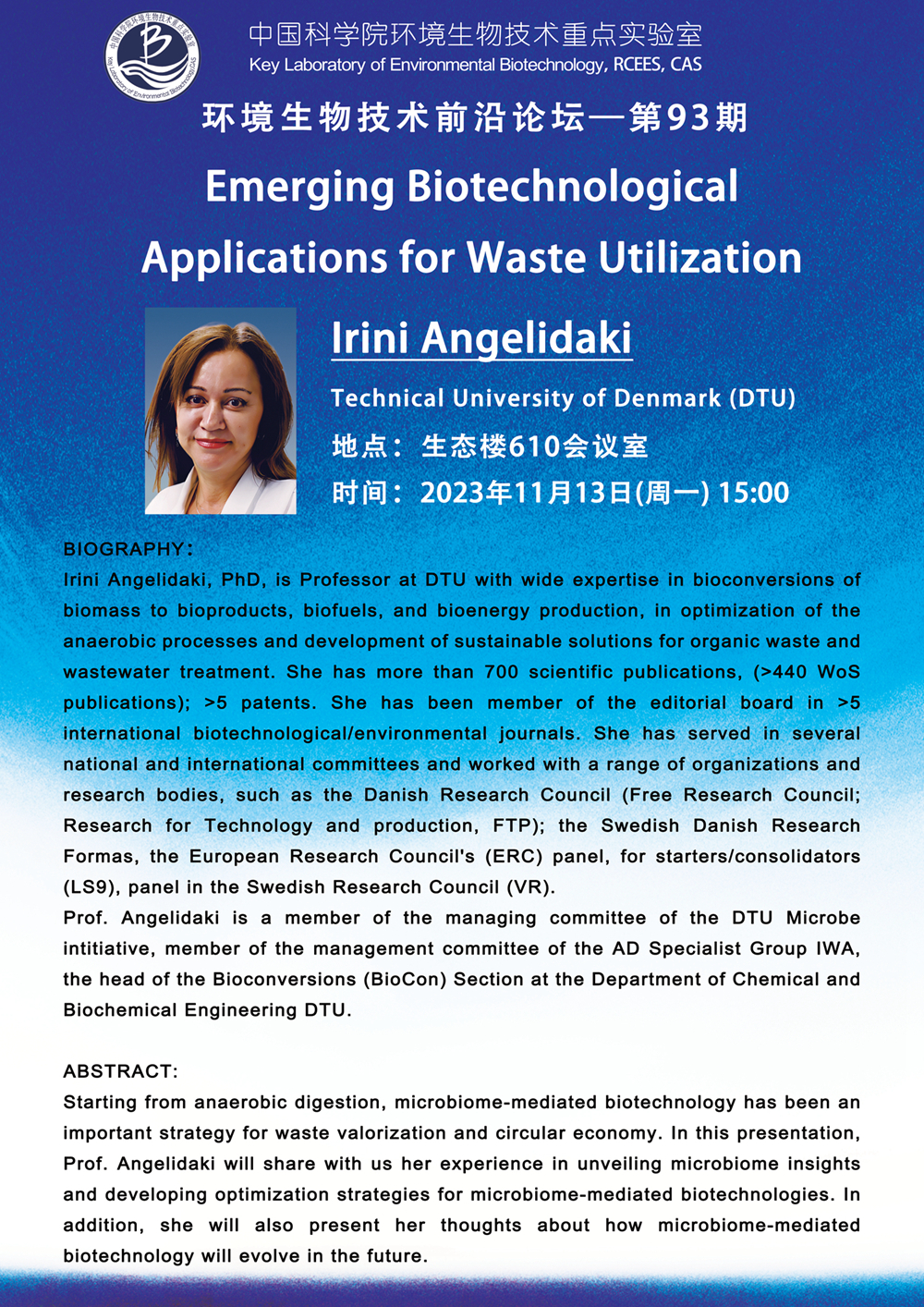 环境生物技术前沿论坛第93期:Emerging Biotechnological Applications for Waste Utilization