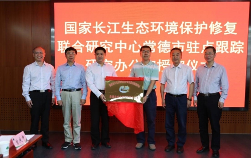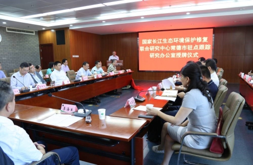 5月21日,国家长江生态环境保护修复联合研究中心(以下简称“长江中心”)常德市驻点跟踪研究办公室(以下简称“驻点办公室”)授牌仪式在中科院生态环境研究中心举行。长江中心总体专家组组长曲久辉院士,长江中心主任李海生、运管部主任刘录三,常德市委常委、常务副市长陈恢清、常德市生态环境局党组书记陈建国,中国科学院科技促进发展局生物技术处处长周桔,生态环境中心主任欧阳志云、副主任杨敏、党委副书记庄绪亮、常德驻点研究负责人刘俊新研究员等领导和专家,以及生态环境研究中心、生态环境部环境工程评估中心、中国环境科学学会、湖南农业大学、湘潭大学、常德市双赢环境咨询服务有限公司等驻点跟踪研究工作组成员单位代表等近40人参会。会议由庄绪亮副书记主持。