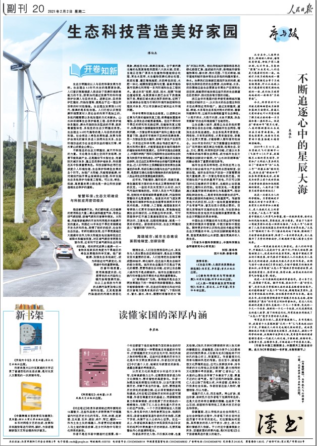 2月2日,《人民日报》“开卷知新”栏目刊发了中心傅伯杰院士署名文章《生态科技营造美好家园》。