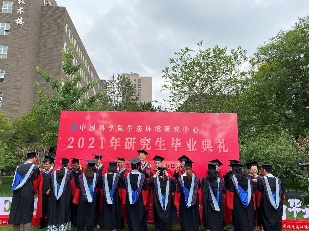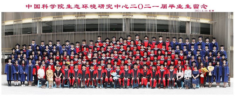 最后,中心副主任杨敏研究员宣读了中心2021届毕业生名单。中心领导和导师代表为毕业生扶正流苏,并合影留念。毕业典礼在鲜花、掌声和祝福的簇拥下圆满结束,会场欢笑不断,洋溢着幸福和喜悦。衷心祝愿毕业生们能够把握时代节奏,找到人生价值。正值建党100周年,希望毕业生们牢记生态环境科研人的使命,将自己的命运与党和国家命运相连,奋勇争先,迈向新的辉煌!